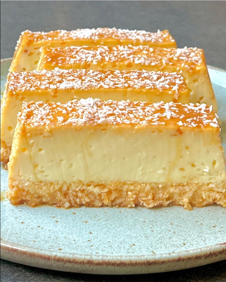 RECETTE :Moule de 20cm ou moule à cake de 23cmOn prend tout ce qui suit en vrac et on mélange vivement !1 pot de lait concentré sucré (397ml)400 ml lait (ou lait coco ou moitié moitié)3 œufs80g noix coco râpée lire la suite en page suivante